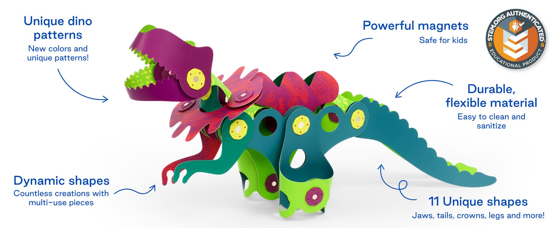 Jump into a time machine with the Clixo Discovery Pack! Snap together multiple dinos at once, a roaring T-rex, soaring pterodactyl, or towering long-neck giant. Inspire creative confidence, foster STEAM learning and discover the power of play with Clixo!