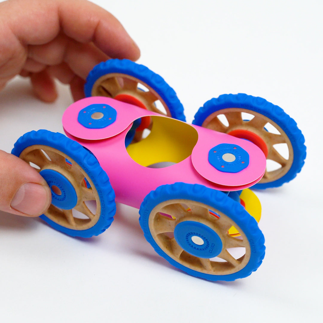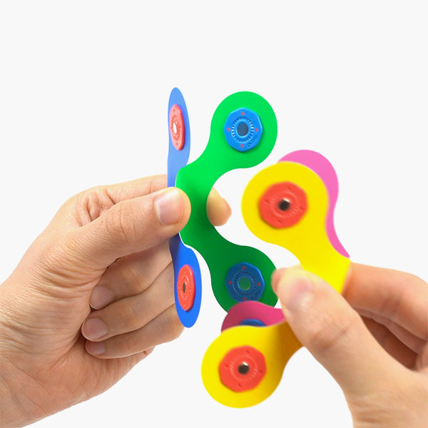 It’s easy and simple! Connect different shapes and pieces together by snapping the red and blue magnets together. The pieces are also flexible and can be curved differently to make different designs.