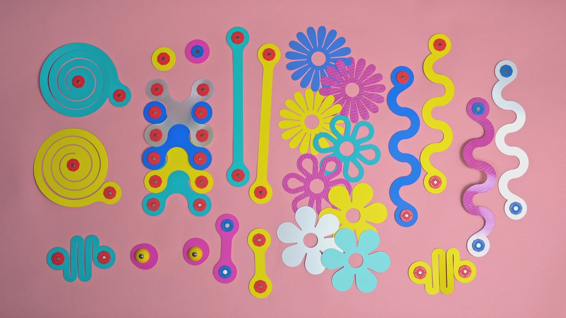 It’s easy and simple! Connect different shapes and pieces together by snapping the red and blue magnets together. The pieces are also flexible and can be curved differently to make different designs.